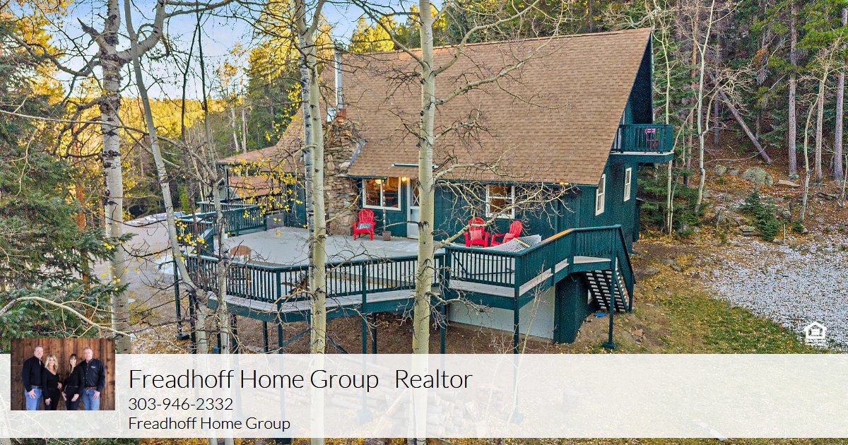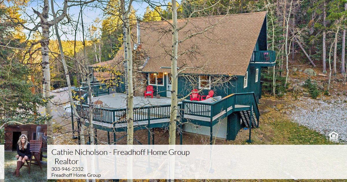 - Large covered porch connects to wraparound oversized deck amid the trees